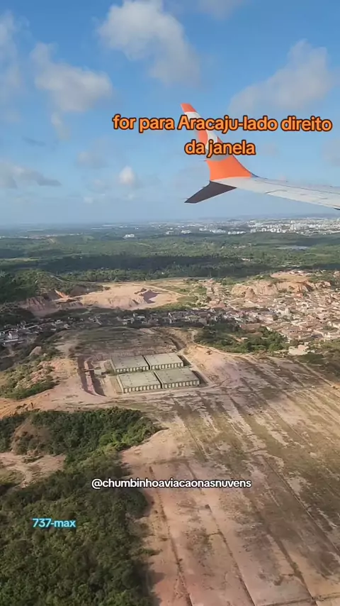 após 36 minutos de vôo de Salvador para Aracaju no boeing 737-max pelas imagens e sendo primeira vez recomendo janela lado direito para ter a vista do litoral e terminal do aeroporto #Aracaju #boeing #737max #viajar #avião