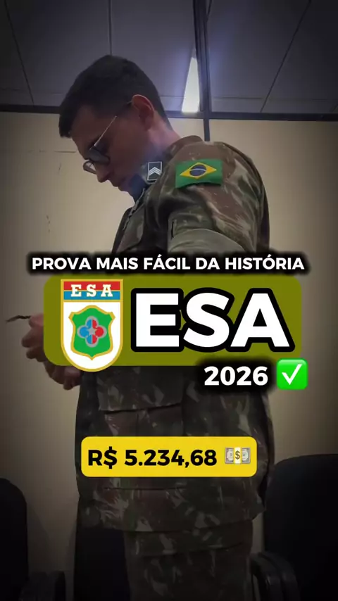 O concurso da ESA é uma ótima opção para quem sonha em seguir a carreira militar e busca uma estabilidade financeira. São mais de 1.100 vagas TODOS OS ANOS, para ambos os sexos e com provas em todo Brasil. Durante a formação o aluno recebe um salário, plano de saúde, alojamento, fardamento e alimentação. Vale lembrar que a formação da ESA conta como ENSINO SUPERIOR NÍVEL TECNÓLOGO 🔥 Após formado, você sairá como 3º Sargento do Exército, ganhando algo entre R$ 5k e 6,5k, dentre outros benefí...