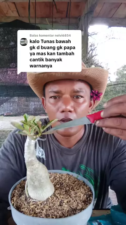 Membalas @nelvi6854 Kenapa cabang dasar dibuang? agar tidak terjadi persaingan unsur hara antara entress dan cabang utama. kalau mau dirawat juga bisa, tapi jangan dipilih terlalu banyak cabang utama dan harus dikontrol pembesarannya.#perawatanadenium#adeniumtips#cararawatadenium