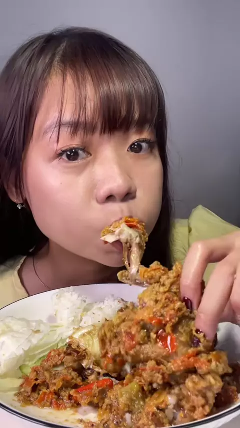 Mukbang ayam geprek plus cumi laut geprek kak Meldi, perpaduan yang sangat mantappp#mukbang#asmrfood#ayamgeprek#cumilautpedes#spicyfood