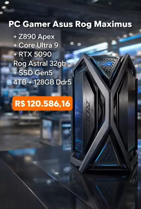 Se dinheiro não fosse problema… você compraria esse PC? 😏💸 Core Ultra 9 285K + RTX 5090 + 128GB RAM + SSD Gen5 4TB. 🚀 Um setup feito pra rodar tudo no máximo por anos: 🎮 4K Ultra + Ray Tracing 🎬 Render pesado 🧠 IA e projetos gigantes Agora responde: você teria um desses ou montaria algo mais pé no chão? 👀🔥 #PCGamer #RTX5090 #SetupDosSonhos #PCMasterRace #HardwareExtremo