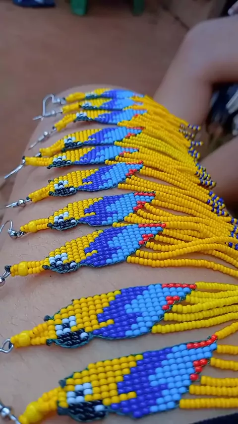 trabalho fazendo brincos colares pulseiras com miçangas e dêmais outros artesanatos indígenas conto com apoio de vocês tamos junto 🙏❤