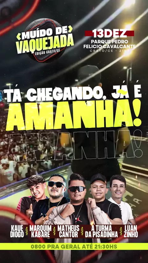 🏇✨ Alô Crato. Alô Cariri. 🐎 Tá Chegando. Já é Amanhã o MUÍDO DE VAQUEJADA no Parque Pedro Felício Cavalcanti. E pra animar a nossa noite tem eles @kauediogoreserva @marquim_kabare_ofc @matheuscantorofc @aturmadapisadinha @luanzinhovitor e muito mais. E atenção 0800 pra geral até às 21h:30. Chama a sua turma e vem curtir essa edição. Cheguem cedo! 📍🤩🏇🔊🥃💃🔥🚀 _ _ _ #Amanhã #MuidoDeVaquejada #Crato #Cariri #ParqueDeExposição @wallysson_olinda_reserva @claudeirtondamidiaof @muidodevaquejada_