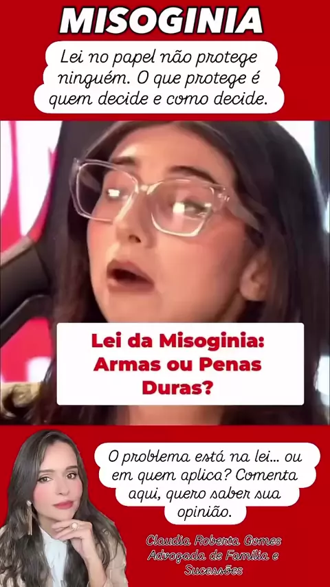 Misoginia. Lei no papel não protege ninguém. O que protege é quem decide e como decide. A Lei Maria da Penha foi um avanço, mas sozinha não impede a violência. Na prática, falta estrutura, fiscalização e muitas mulheres ainda estão presas pela dependência emocional ou financeira. E aqui está o ponto: não adianta criar leis se a base não muda. Proteção real começa antes. No autoconhecimento, na independência, na escolha de com quem se relacionar. Lei é necessária, mas não suficiente.