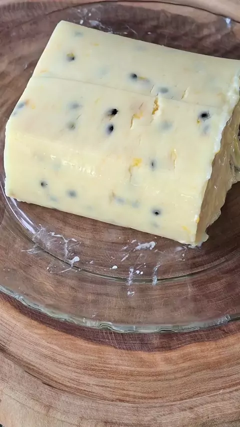 Mousse de corte Polpa de 2 maracujá 1 xivara de 300 ml de açúcar Para o creme 600 ml de leite 4 colheres de amido de milho 5 colheres de leite em po 1 cx de creme de leite #mousse #maracuja #sobremesa #receitafacil