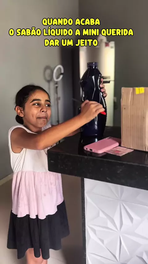 Quando acaba o sabão líquido a mini querida dar um jeito #fy #asmr💦 #donadecasa