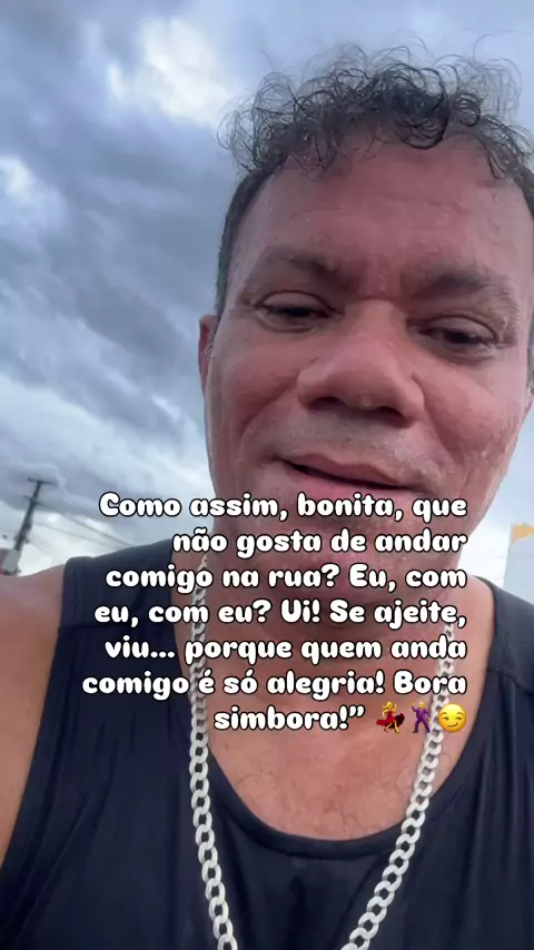 Como assim, bonita, que não gosta de andar comigo na rua? Eu, com eu, com eu? Ui! Se ajeite, viu… porque quem anda comigo é só alegria! Bora simbora!” 💃🕺😏