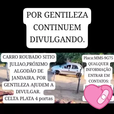 Bom dia minha gente por favor compartilha essa foto desse carro que e de um pai de família trabalhador que tava vindo do trabalho e roubaram o carro dele e ele precisa do seu carro para trabalhar e ganhar seu pão de cada dia obrigado a todos que poder compartilhar 😇