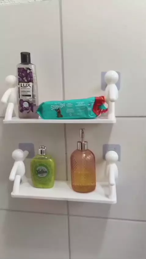 Deixe seu banheiro mais limpo e moderno! O suporte autocolante para banheiro fixa com firmeza, não enferruja e organiza tudo sem precisar de ferramentas. #suporteparabanheiro #banheiroorganizado #casaprática #kwaishop