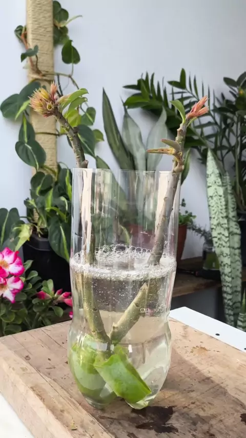 Veja que técnica maravilhosa pra enraizar galhos de rosa do deserto