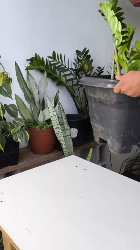 transplantado zamioculca em vaso