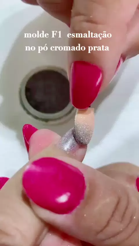aplicação no molde f1 + esmaltação no pó cromado prata 🥈 uma boa escolha pro carnaval #Unhas #esmaltacao #nailart