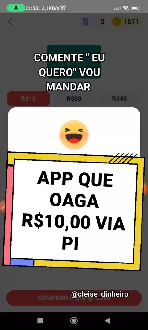 #Desafiepara100kVis novo app para ganhar dinheiro via PIX #PraQueFuiMeApaixonar #cleisedinheiro