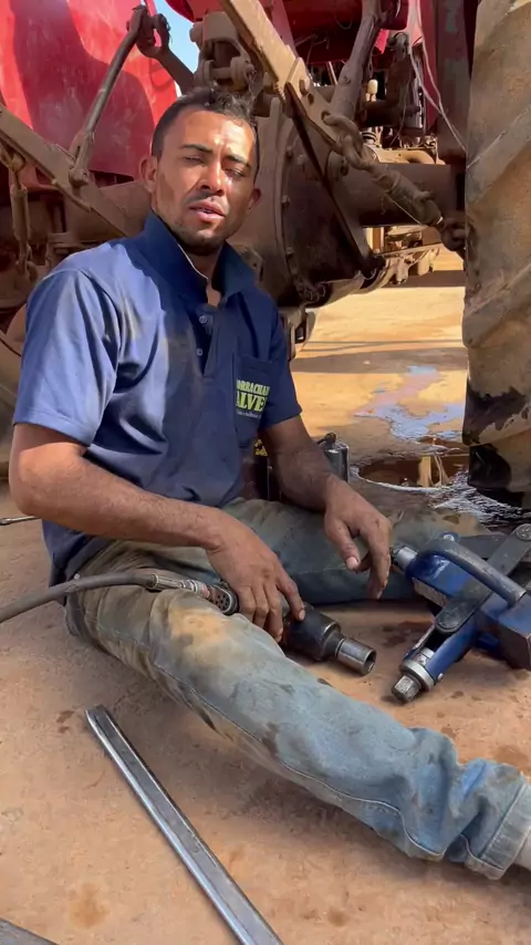 Borracheiro Alves o brabo mostrando o funcionamento do destalonador de pneus Forjoeste