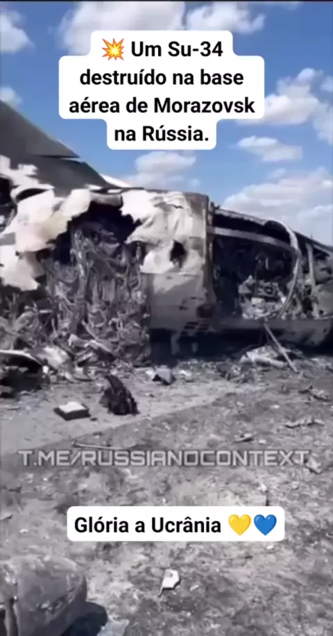 🇺🇦🇷🇺💥Um Su-34 russo destruído na Base Aérea de Morozovsk, uma vista de perto e o momento de uma poderosa explosão. #viraliza #GuerranaUcrania🇺🇦