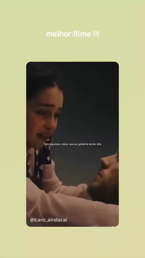 Como eu era antes de você ... Uns dos melhores filmes de romance.. Quando tudo parece difícil Deus manda alguém para cuida-lo e para ama-lo da maneira que ele está ...