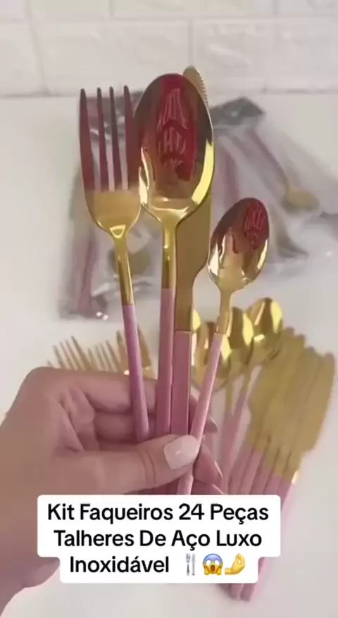 Jogo De Talheres Faqueiro 24 Peças Inox Aparelho De Jantar Itens Mesa Posta #shopkwai #Shop
