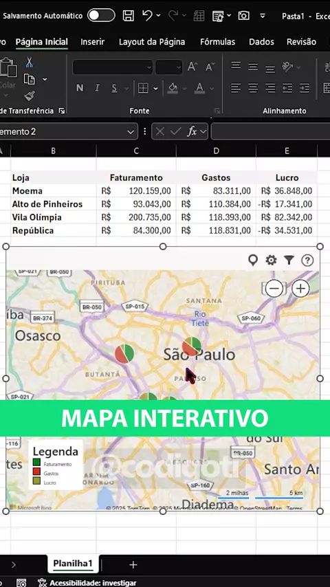 Mapa interativo no Excel 😉 Quer aprender mais sobre o Excel? Clica no link da BIO 👉 @codigoti. 👈 #Excel #planilhas #planilha #sheets #adm