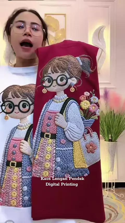 Kaos Lengan Pendek Digital Printing Motif Bunga Korea Style #kaoswanita #kaoslenganpendek #kaosprinting