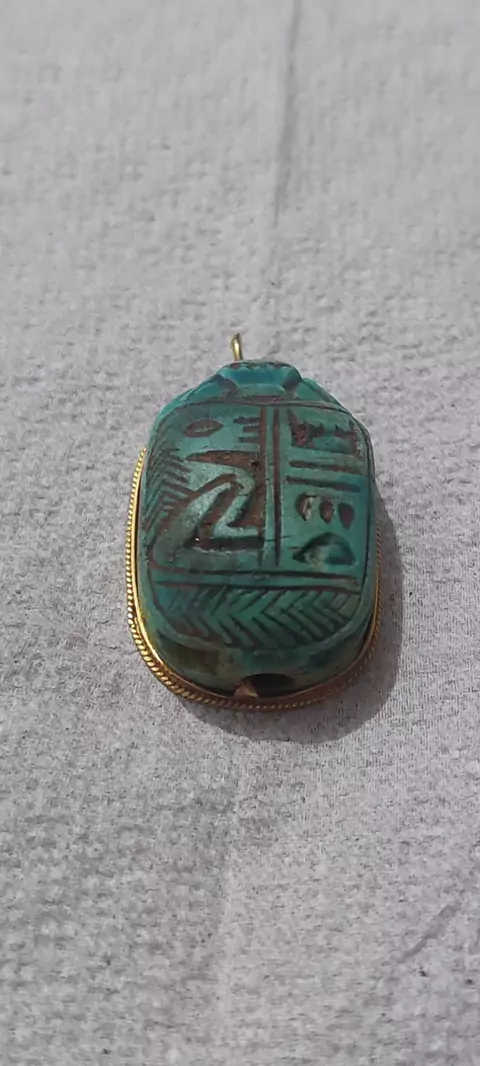 Pendente em ouro amarelo na bordas com pedra de turquesa azul com desenho em alto relevo disponível