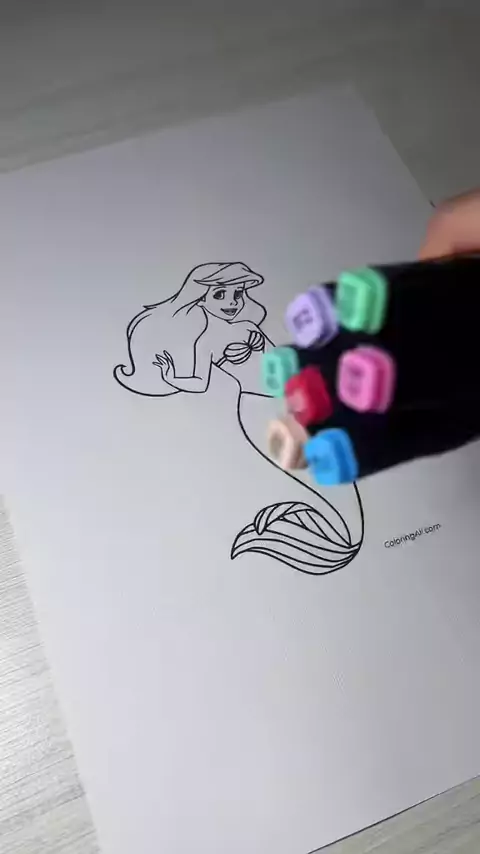 Relaxing coloring of Ariel from The Little Mermaid 🧜‍♀️ #coloring #colorir #asmrsounds
