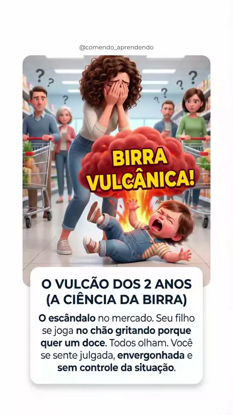 O escândalo no mercado te faz querer sumir? Calma, mãe. 🌋😥 Aos 2 anos, a birra não é malcriação, é um cérebro "em obra". Diante da frustração, a parte lógica literalmente desliga e a emoção explode feito um vulcão. 🤯 Não adianta brigar no caos. Empreste sua calma. O abraço é a ponte mais rápida para "religar" o cérebro dele. Conecte antes de corrigir. ❤️ #birra #maternidade #cerebro #educacao #acolhimento