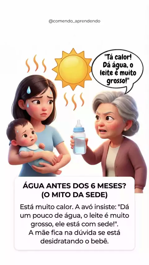 "Tá calor, tadinho, dá um golinho d'água!" 🥵 PARE! ✋ Bebê menor de 6 meses NÃO precisa de água, nem no maior calorão. O leite (materno ou fórmula) já é mais de 85% água. É hidratação perfeita + nutrição. 🤱💧 Dar água pura é perigoso: enche o estômago minúsculo sem alimentar (risco de desnutrição) e pode diluir o sangue (intoxicação hídrica). Confie no leite! #agua #bebe #amamentacao #calor #saude