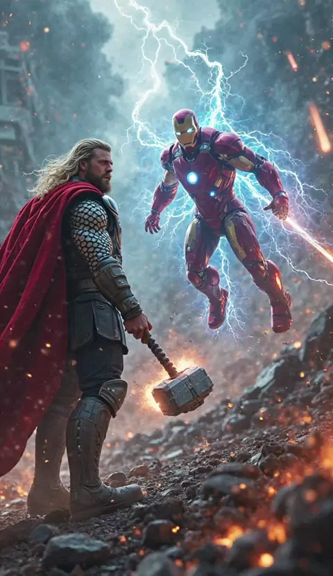Alta tecnologia e poder dos deuses lado a lado! ⚡️🛡️ #HomemDeFerro #Thor #Vingadores #Marvel #DuplaImparável