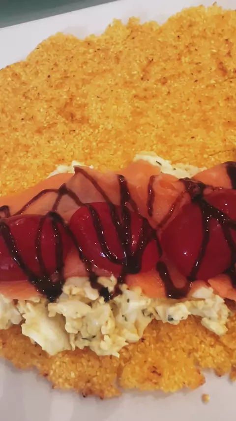 Lanche da tarde: ✅crosta de flocão ✅salmão defumado ✅ salada de ovos ✅balsâmico #comidadiaria #kwaicomida #viral #fyp