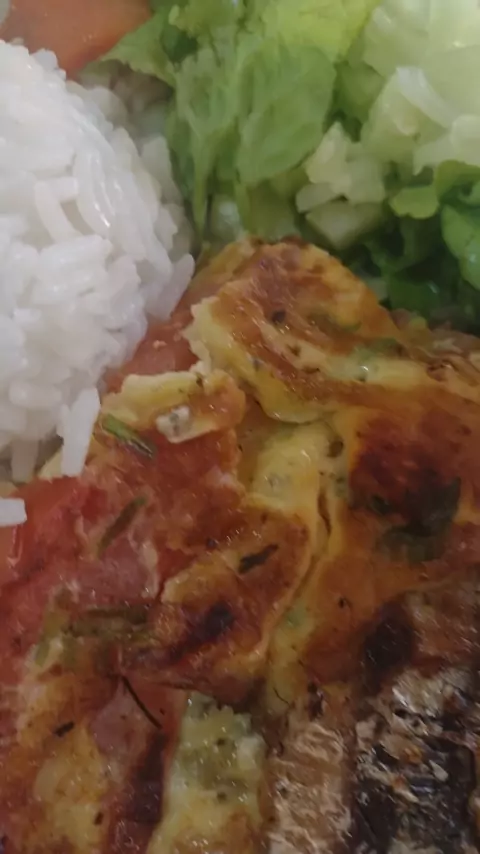 #prato feito #arroz,omelete de tomates com sardinhas temperos e legumes refogados #acompanha salada de folhas e pepino #😋