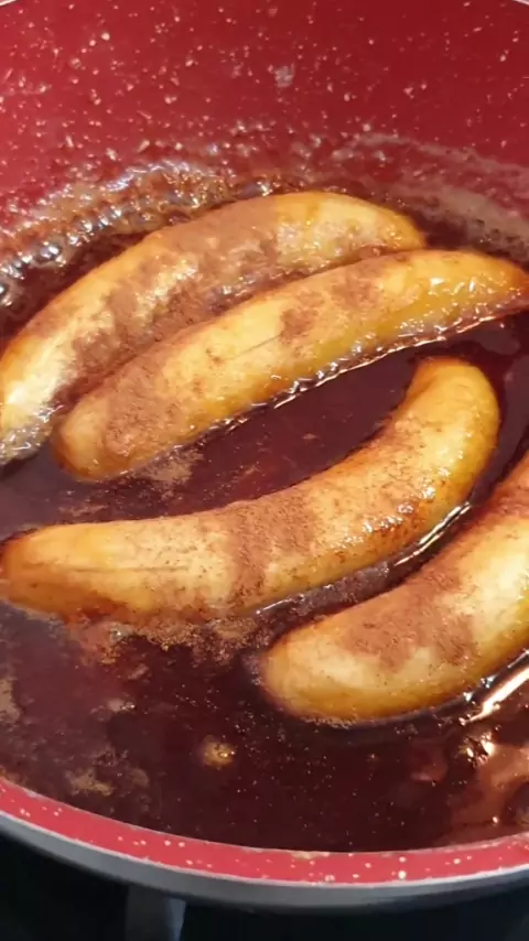 Tem banana sobrando? Bora fazer essa sobremesa deliciosa! BANANA FLAMBADA 🍌 Eu fiz assim: coloquei 4 colheres (sopa) de açúcar na frigideira, deixei derreter e depois acrescentei 1/2 xícara (chá) de suco de laranja, mas tambem pode ser água quente. Ai não precisa mexer, a mistura vai derreter sozinha. Juntar uma 1 colher (sobremesa) de manteiga e colocar as bananas. E aí é só deixar até o caldo engrossar. #euempreendedor #food #receita #comida #EfeitoEmLoop