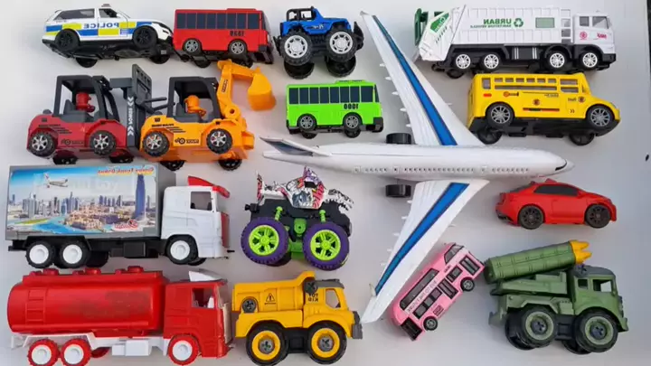 Construção carro educação precoce, helicóptero, ônibus e histórias de vídeo de brinquedo das crianças