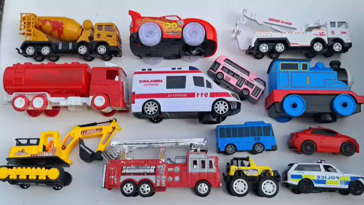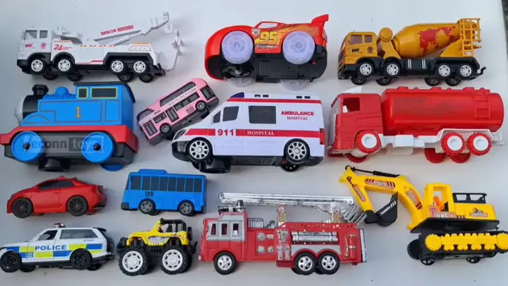 Educação precoce para carros de construção, caminhões grandes, carros de polícia e ambulâncias