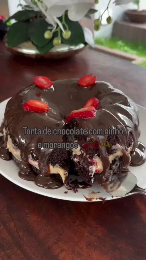 Torta de chocolate com ninho e morango ๐Ÿ“๐Ÿ˜ #morango #Torta #bolo #Receita #dicas