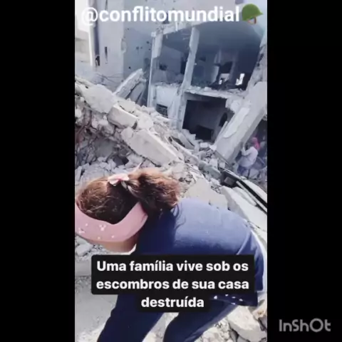 Família vive sobre os escombros em Gaza.