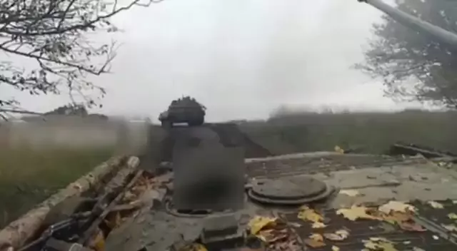 Arquivo de 2022, dezembro. Subúrbios da cidade de Vugledar, região de Donetsk. O grupo blindado de assalto de tropas russas - um tanque e dois BMP-2 com infantaria - está a mover-se para posições ucranianas. #Awesome #war #explosão #short #russiaucrania