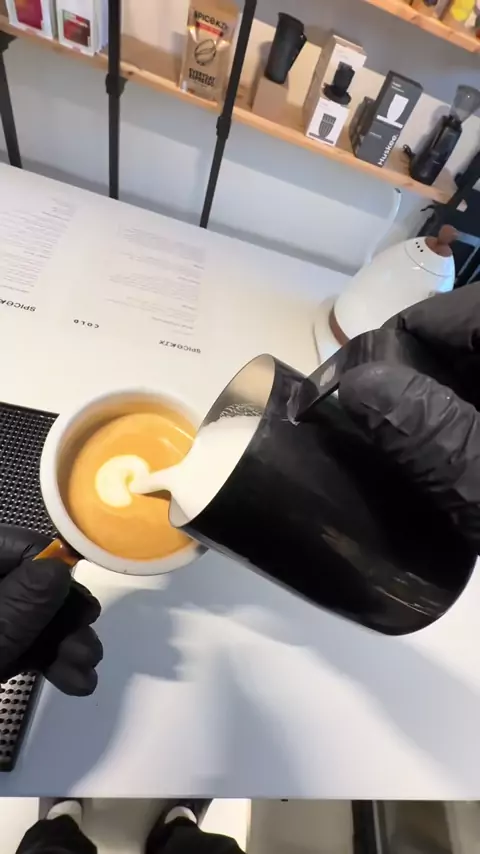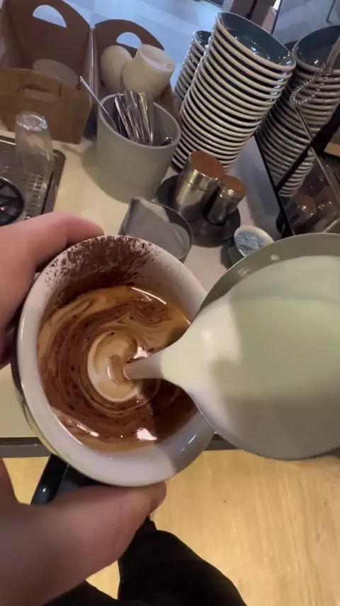 Replying to @Kitt Probably a cortado, making sure the depth of foam and texture is perfect whilst minimising the amount of wasted milk is something I’m always working on ☕️#speciality_coffee#cortado#coffee#asmr#latteart#coffeetok#