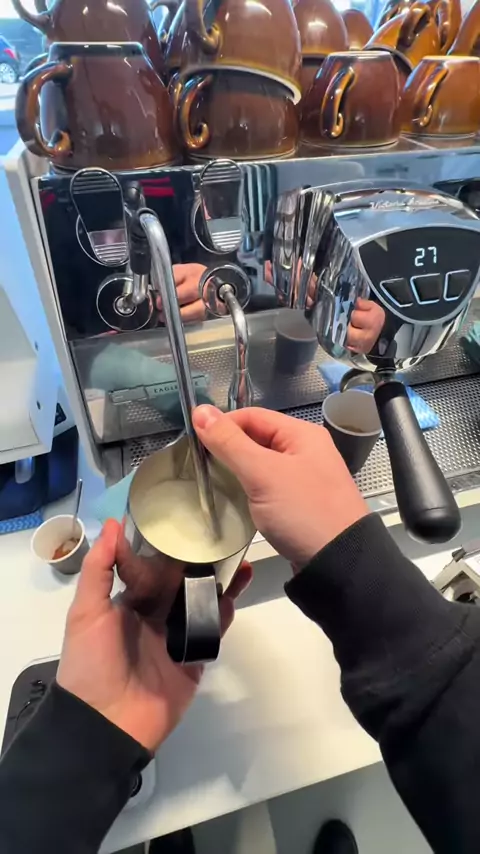 POV- First coffee of the day ☕️#coffee#barista#latteart#pov#satisfying#cafe
