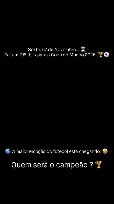 Faltam 216 dias para a Copa do Mundo 2026! ⏳⚽️ Quem será o campeão ? 🏆🌎 #Futebol #copadomundo #CristianoRonaldo #Messi #Neymar