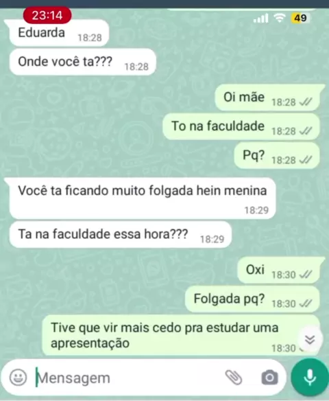 "Quando a mãe parece preferir o namorado à própria filha... 💔👩‍👧💑 #conversasdewhats #history #whatsapp #fy #tiraochapéu