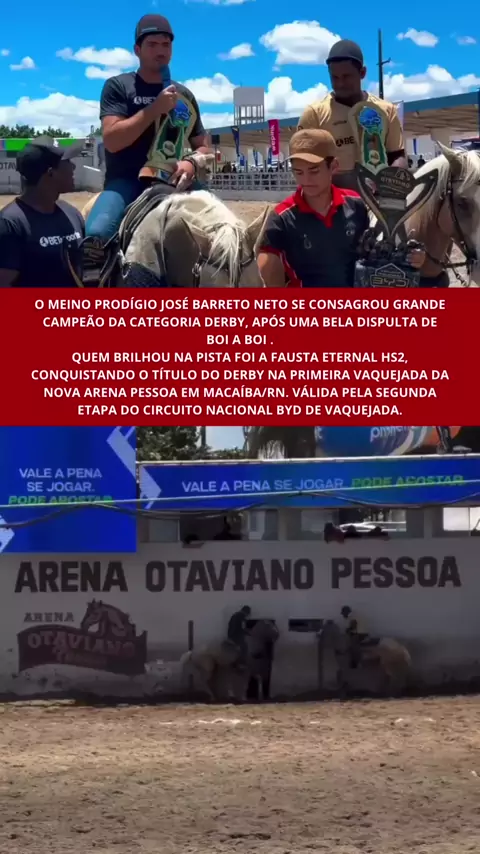 O menino prodígio José Barreto Neto se consagra o grande campeão da categoria Derby, após uma bela disputa boi a boi! Montando o craque Fausta Eternal, o vaqueiro mostrou frieza, técnica e muita categoria para garantir o topo do pódio #vaqueiro #cavalo #vaquejada #troféu #competição