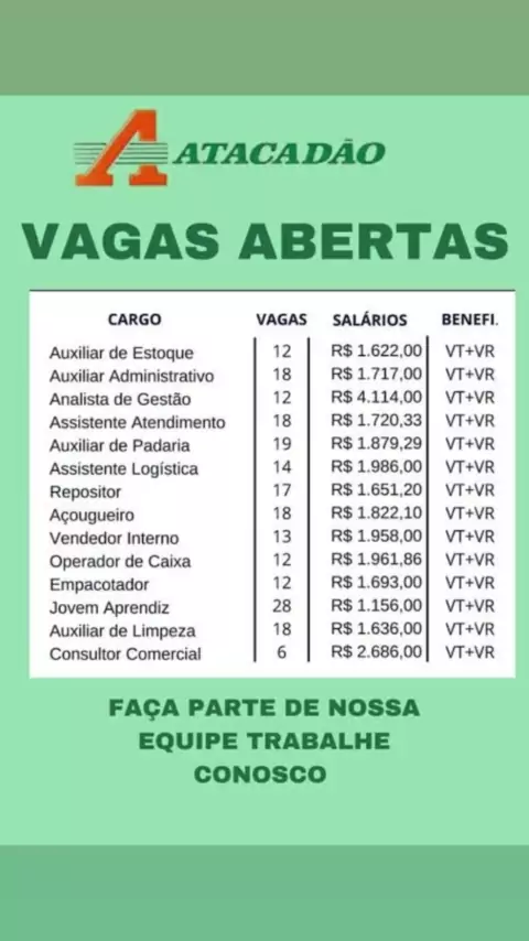 VAGAS DE TRABALHO NO SUPERMERCADO ATACADÃO!#vagas#vagasdetrabalho#vagasdeserviço#supermercadoatacadao#atacadao
