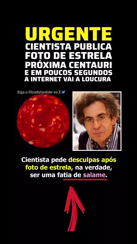🫵Eles riem da sua cara! Zombam da sua inteligência. Se colar, colou. Em julho de 2022, um físico francês de renome publicou o que alegava ser uma imagem deslumbrante de Proxima Centauri, supostamente capturada pelo Telescópio Espacial James Webb. A foto viralizou rapidamente, sendo elogiada como um vislumbre de tirar o fôlego do espaço profundo. •••••••••••••• Dias depois, ele admitiu que a imagem não era de uma estrela, mas sim uma fotografia em close de uma fatia de chouriço (salame).
