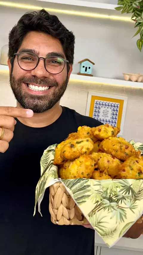 Bolinho de Milho Ingredientes: - 2 latas de milho verde (1 com água e outra sem) - 2 ovos - 1 xícara de farinha de trigo - ½ xícara de fubá - 100g de bacon picado e frito - 50g de queijo parmesão ralado - ½ xícara de cheiro-verde picado - Sal e pimenta do reino a gosto - 1 colher (café) de fermento químico - óleo #receitas #bolinhodemilho #receitadepetisco