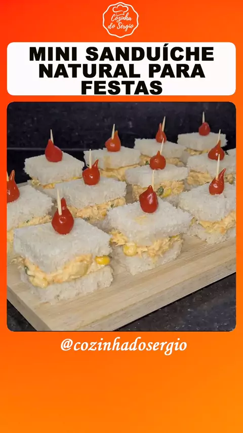MINI SANDUÍCHE NATURAL PARA FESTAS 📄INGREDIENTES✍🏽 PATÊ 500g de peito de frango desfiado 150g de cenoura ralada 1 sachê de milho verde Cheiro verde (a gosto) 200g de maionese 1/2 pote de requeijão cremoso 1 colher de chá páprica doce 1 cebola picada 1 dente de alho picado Sal (a gosto) MONTAGEM DOS MINI SANDUÍCHES Fatias pão de forma Patê Pimenta biquinho ou azeitona sem caroço (opcional) Palitos de dente #minisanduichenatural #sanduichenaturalparafesta #cozinhadosergio #salgadosdefesta