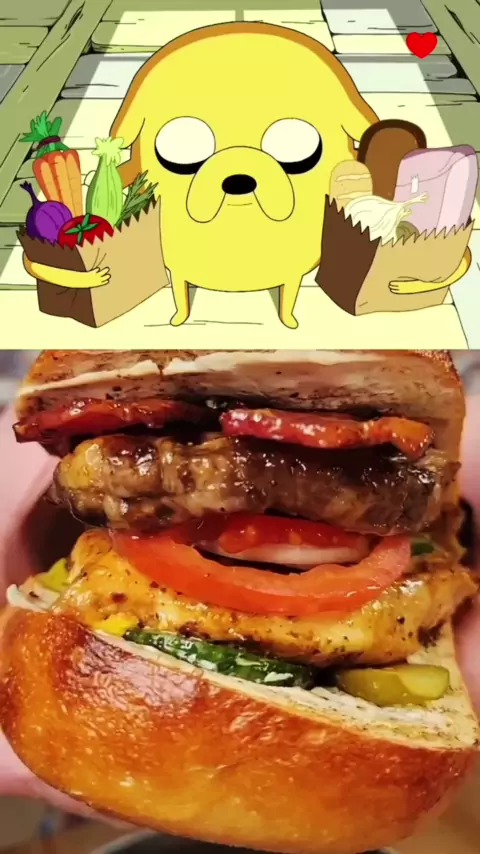Fiz o sanduíche perfeito do Jake de Hora de Aventura #Comidafamilia #comida #viral #sanduiche #burgerking