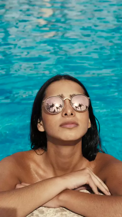 Linda garota a beira da piscina