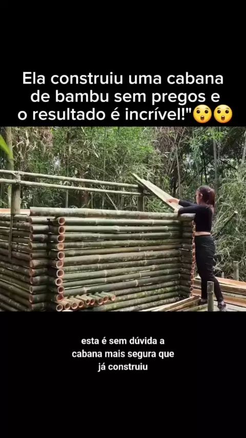"Ela construiu uma cabana de bambu sem pregos e o resultado é incrível!"#NarraStars #CabanaDeBambu #VidaNaFloresta #ConstruçãoSustentável #DIY