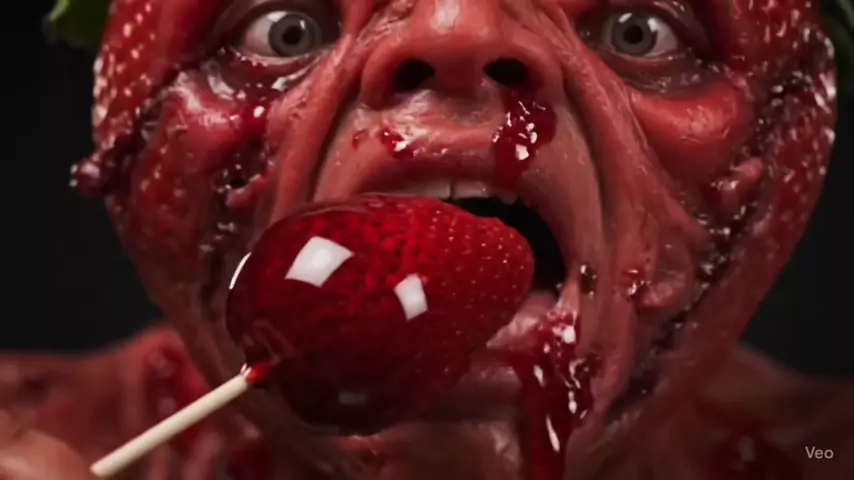 Qual seu doce do amor preferido? 🍓🍇🍊 #veo3 #surrealism #morangodoamor #fy #surreal