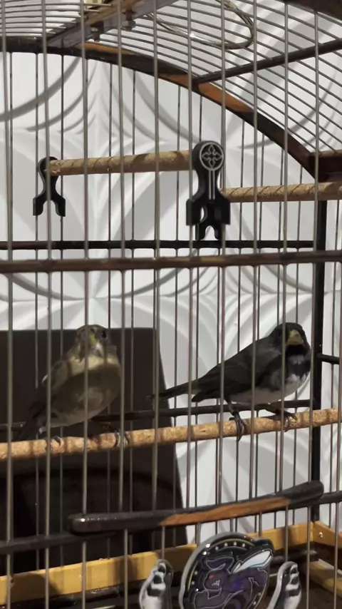 Coleiro pardo cantando com outro coleiro preto#papacapimdefibra#
